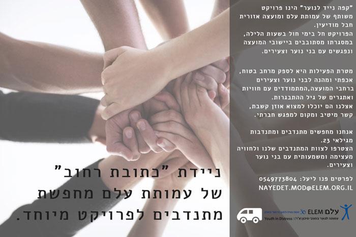 לפרויקט ניידת כתובת-רחוב של עמותת עלם בבית שמש דרושים/ות מתנדבים/ת! לפניות לגבי התנדבות- בעז- 054-97773425 מייל: [email protected]