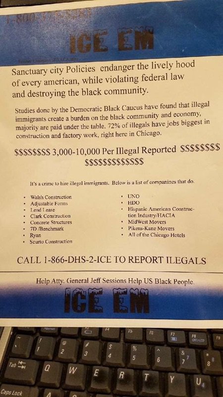 ALDERMAN calls it a "racist" flyer, author "coward" targets African American areas, promoting $$ for reporting illegal immigrants