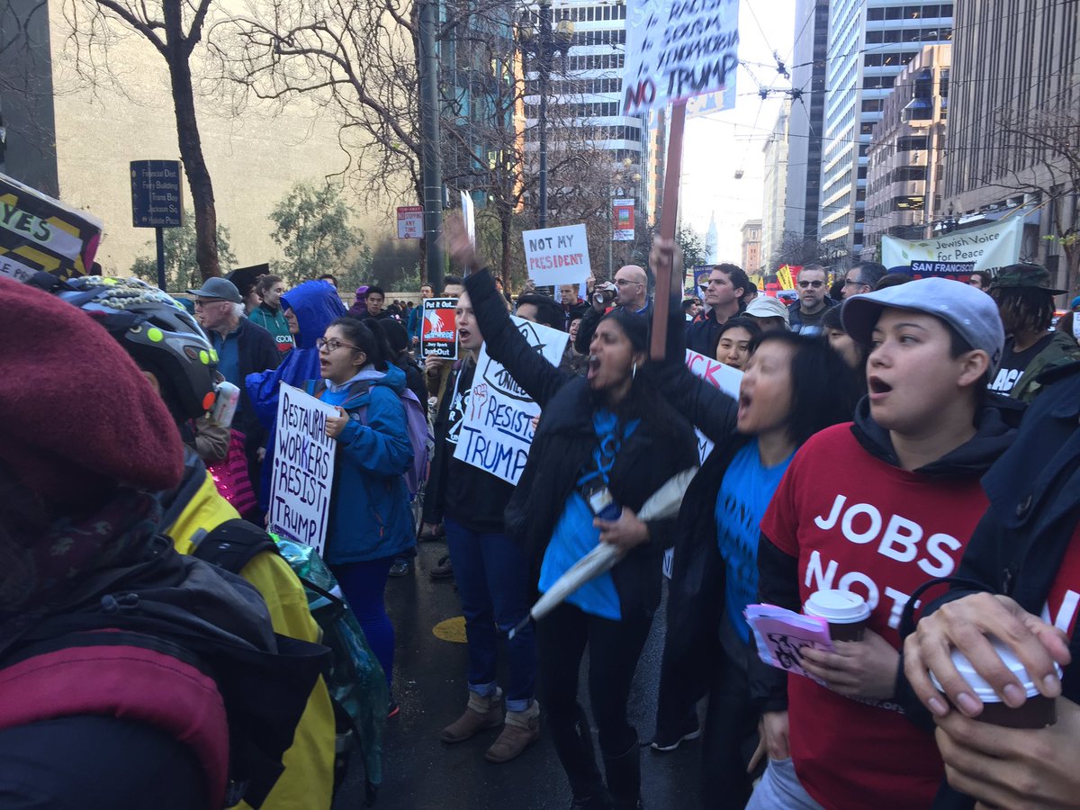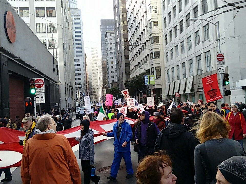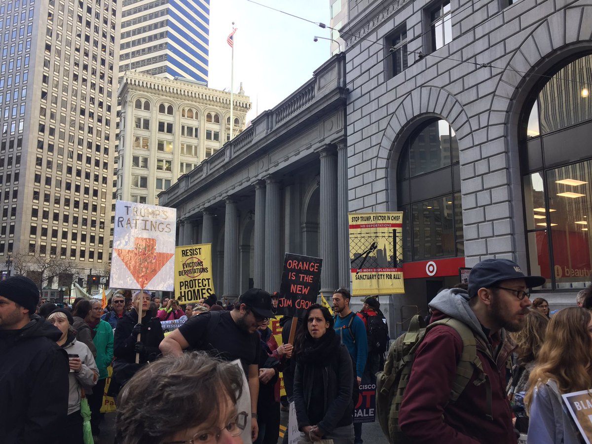 #ResistTrump march has arrived at ICE, at Sansome and Washington, as arrests are happening.#J20#rebelcitiesrisingpic.twitter.com/GyPpS7xqph