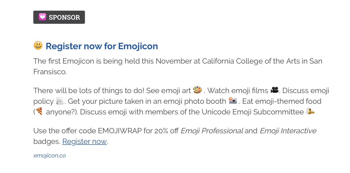 7. 💟 Thanks to Emojicon for sponsoring Emoji Wrap this week 👉 Details and registration @