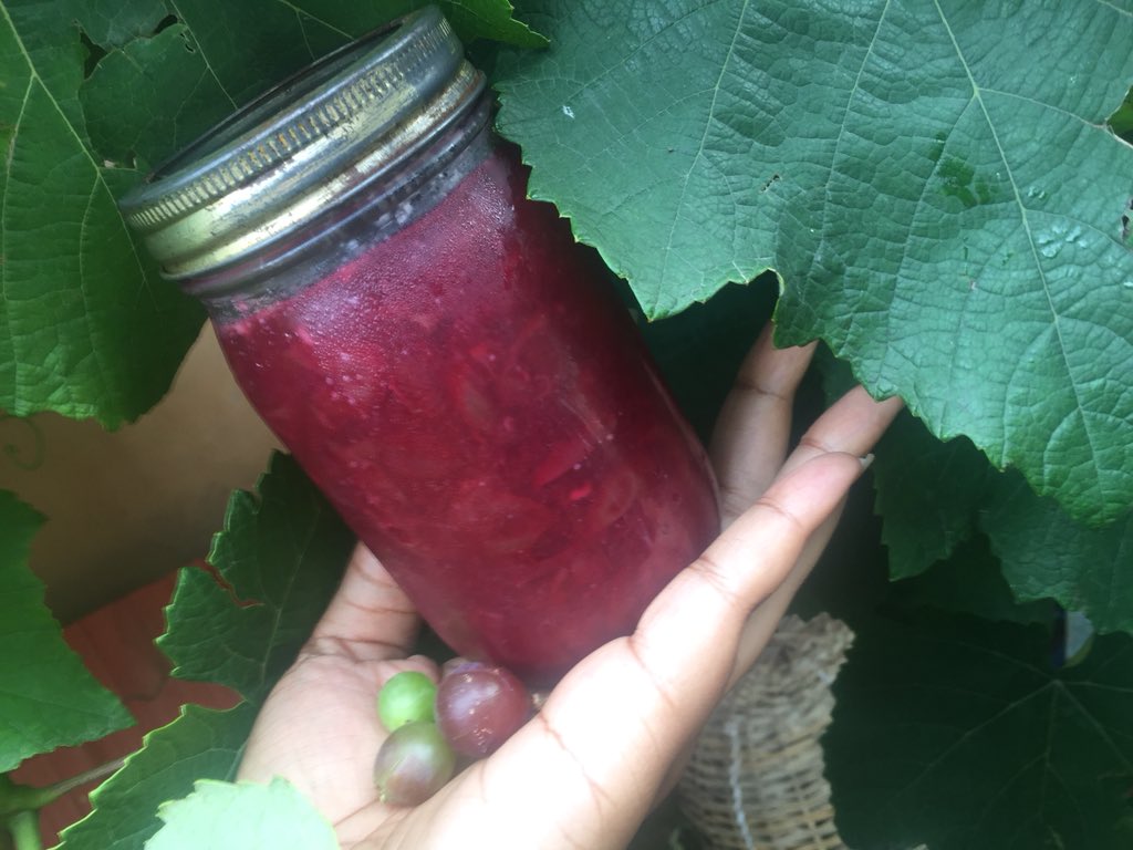 Hello! Remember our grape vine that was fruiting a few months back? Well they are finally ripe and this is what we made with them. Homemade Grape Jam 🍇 We added cinnamon and dates. You can also make yours from Apples, Mango,strawberry Full recipe Below Please RT Thank you!
