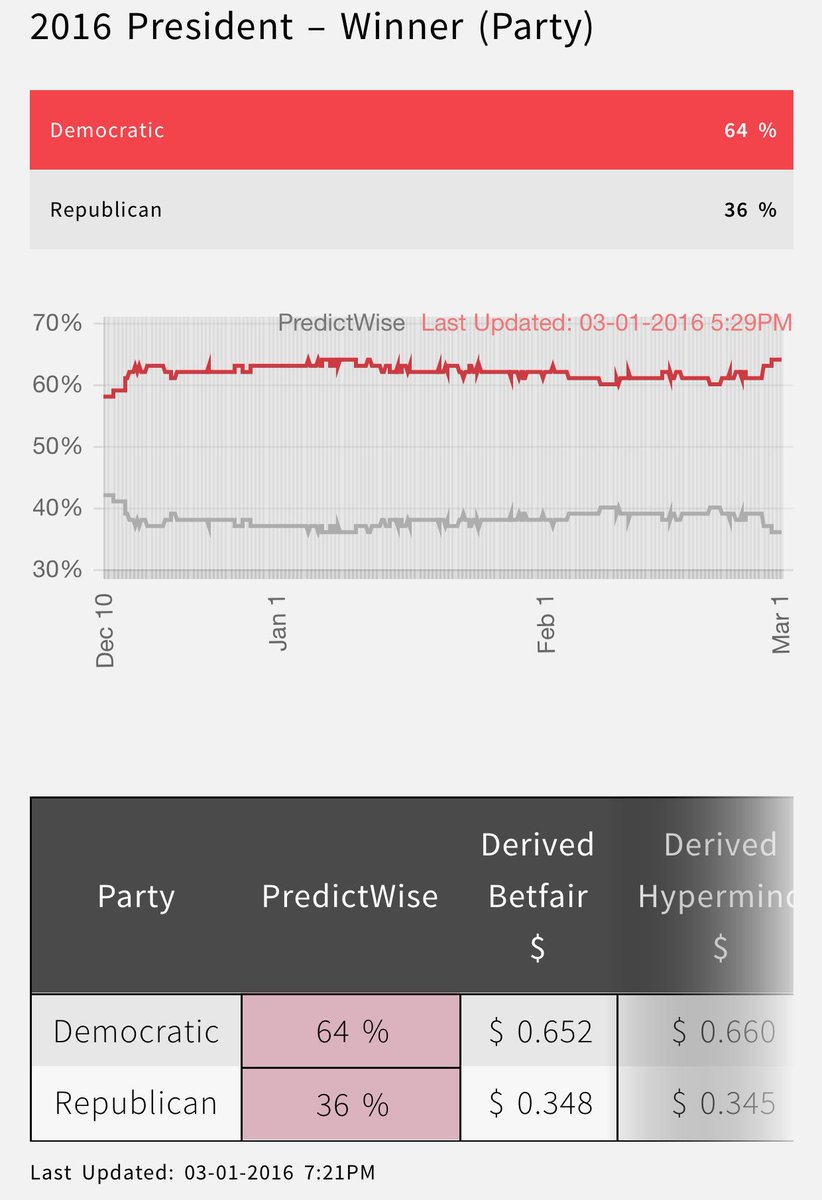 16. The most amazing number of the night is that prediction markets rate the Dems a 64% chance to retain the White House