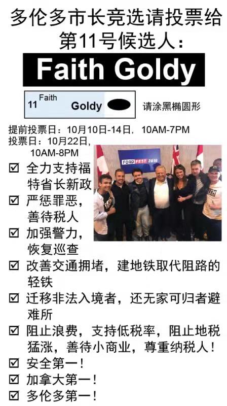 @FaithGoldy for a safer Toronto. She is the only candidate who put Toronto first/tough on crime/cut tax.#CBClie/other main medias are lying to say she is a racist. SHE IS NOT! Chinese communities also support her for a safer Toronto!#FaithForToronto#TOpoli#FaithForMayorpic.twitter.com/u3D0WkBS8U
