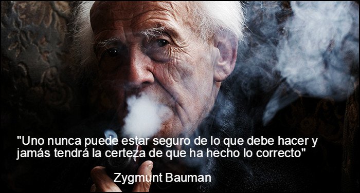 "Uno nunca puede estar seguro de lo que debe hacer y jamas tendrá la certeza de que ha hecho lo correcto" Zigmunt Bauman