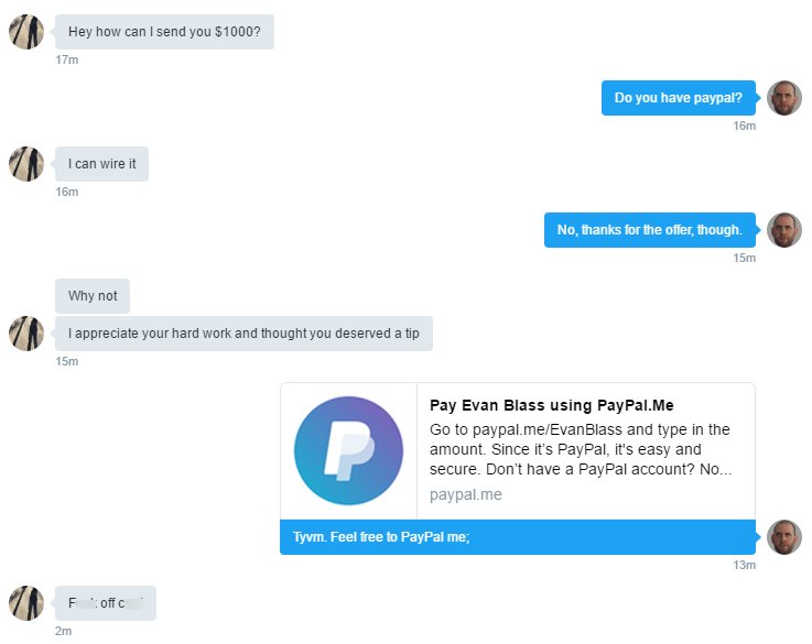 True Tales From Leakland: I Think I Lost a Fan edition All because I wouldn't give him my bank info. Sorry,