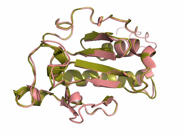 The hedgehog (brown) and sonic hedgehog (pink) gene products are highly similar in structure. This is just the N-terminal half, as the C-terminal portion of sonic has yet to be solved in 3D.