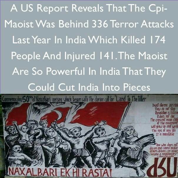 #TheNaxalThreat A US Report Revealed that Maoist was behind 336 terror attacks last year in India which killed 174 and injured 141 persons.pic.twitter.com/cS0l6WI6cA
