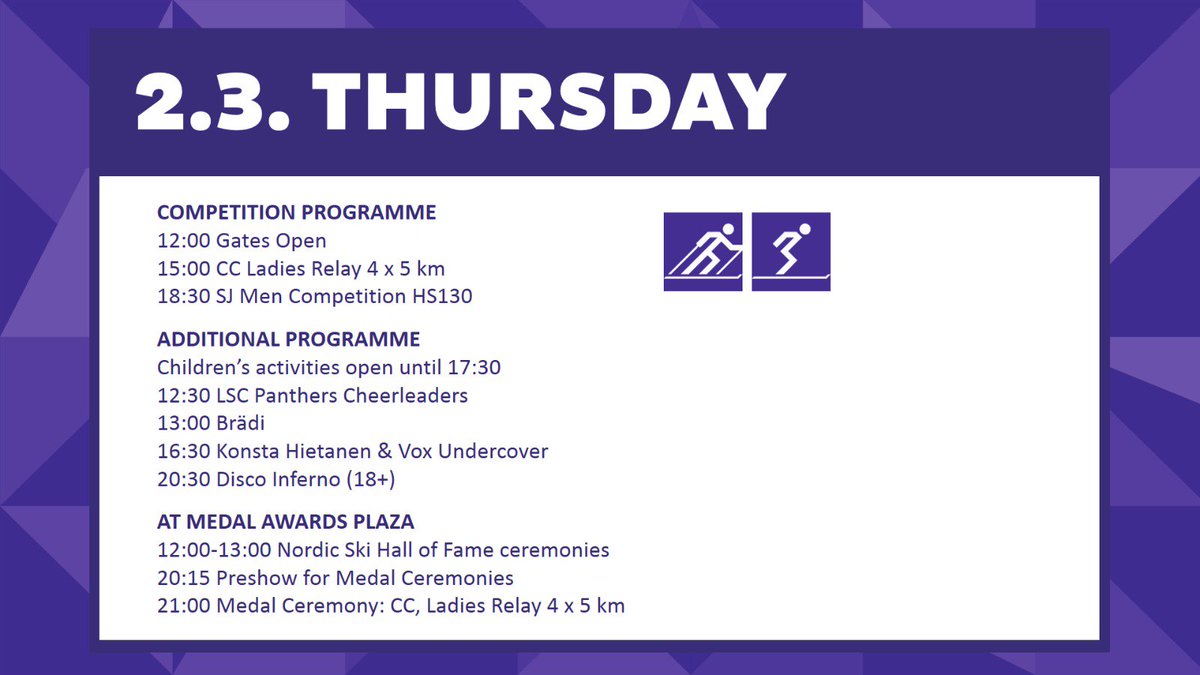 Here is what we have planned for you today! Come early, enjoy and cheer on the athletes! Do NOT forget After Ski! See you soon!pic.twitter.com/p5oDMLPHwe
