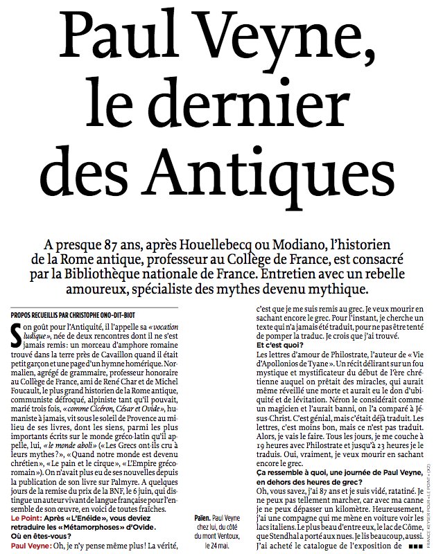 Paul Veyne : le dernier des Antiques. Entretien dans Le Point de cette semaine.pic.twitter.com/4paZrCeGqF