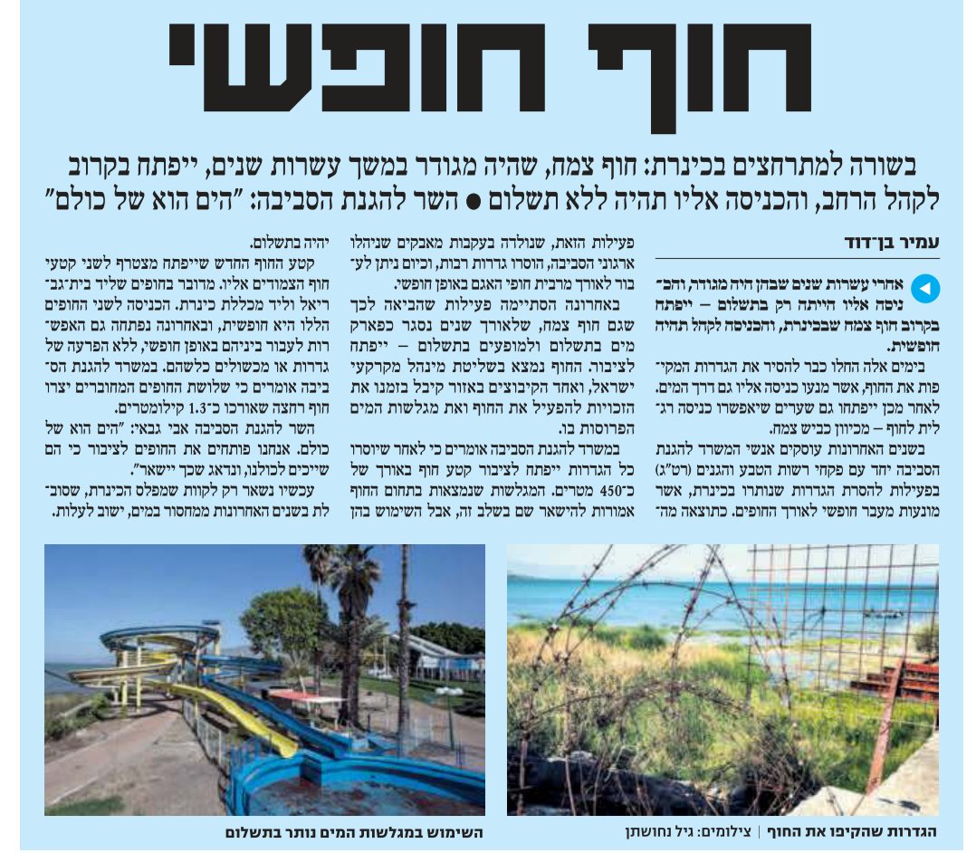 חוף צמח הוא ללא ספק אחד הסמלים של הכנרת, ואחרי עשרות שנים הוא יפתח באופן חופשי לציבור. כך צריך להיות בכל החופים.pic.twitter.com/tl0APoGJgH