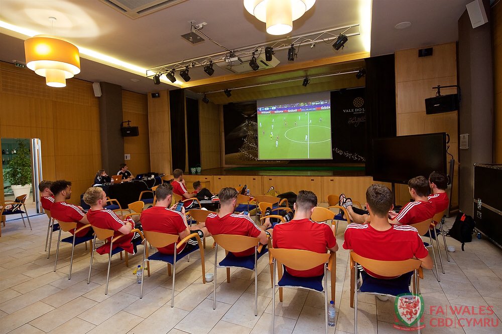 FA Wales @FAWalesWales players watch their compatriot@GarethBale11 in the#UCLFinal