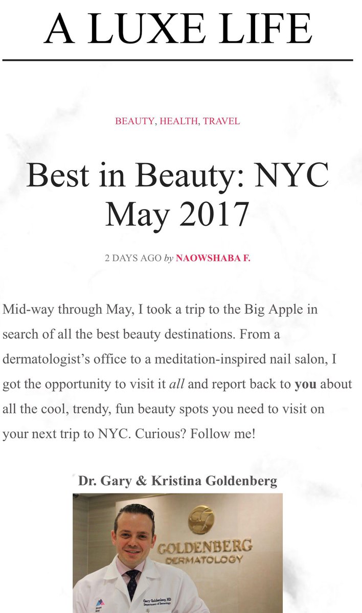 #Beauty:#NYC May 2017 -#ALuxeLife visited#GoldenbergDermatology for@Cutera#LaserGenesis#AskDrG http://buff.ly/2snjWR4 pic.twitter.com/dFZLyPkNxo