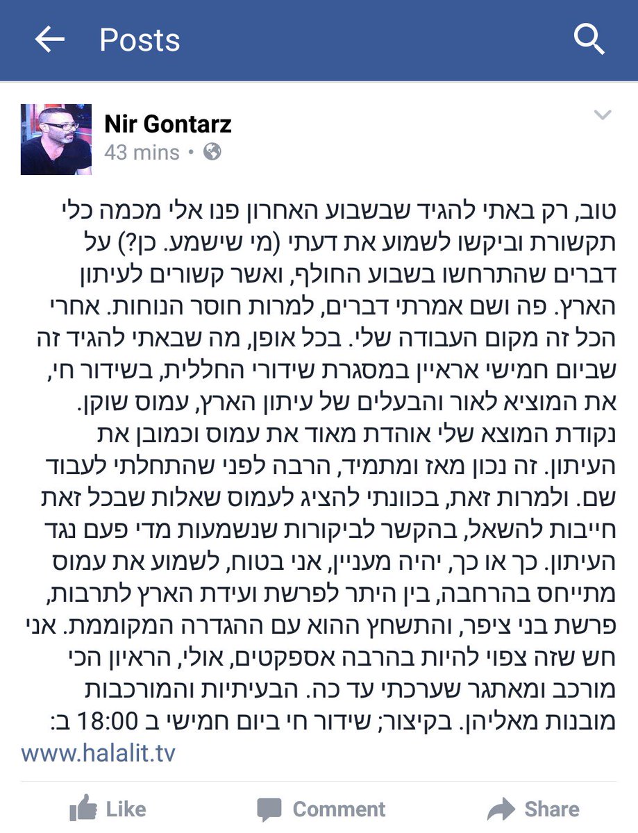 אני חושב שעברתי את ניר גונטז׳ בשלום.https://twitter.com/haaretz/status/712854745061396481 …