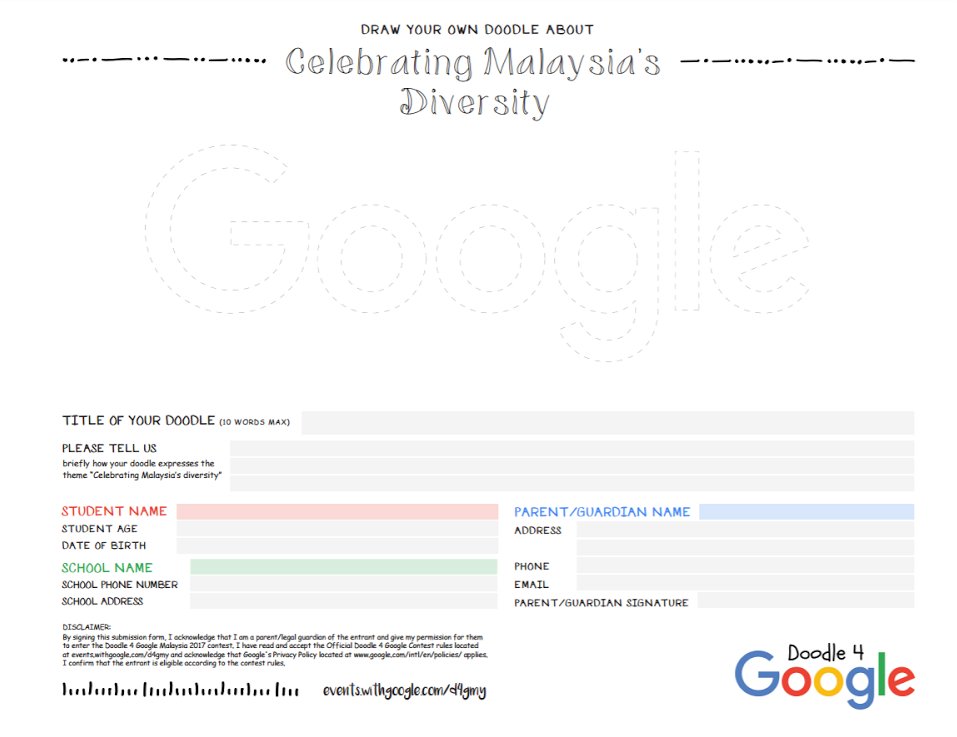 Tak ada idea Doodle 4 Google? Rakyat Malaysia sukakan makanan; cuba ambil inspirasi dari aneka juadah yg ada! https://goo.gl/Tptv47