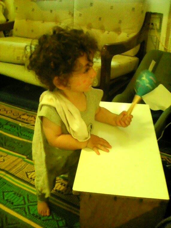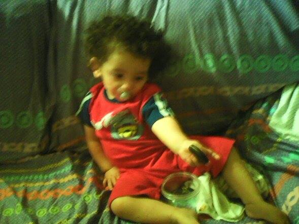 אחרי החלפה ובקבוק הצוציק מאבד עניין בשידור ומשחק ברעשן, ואז שומע את