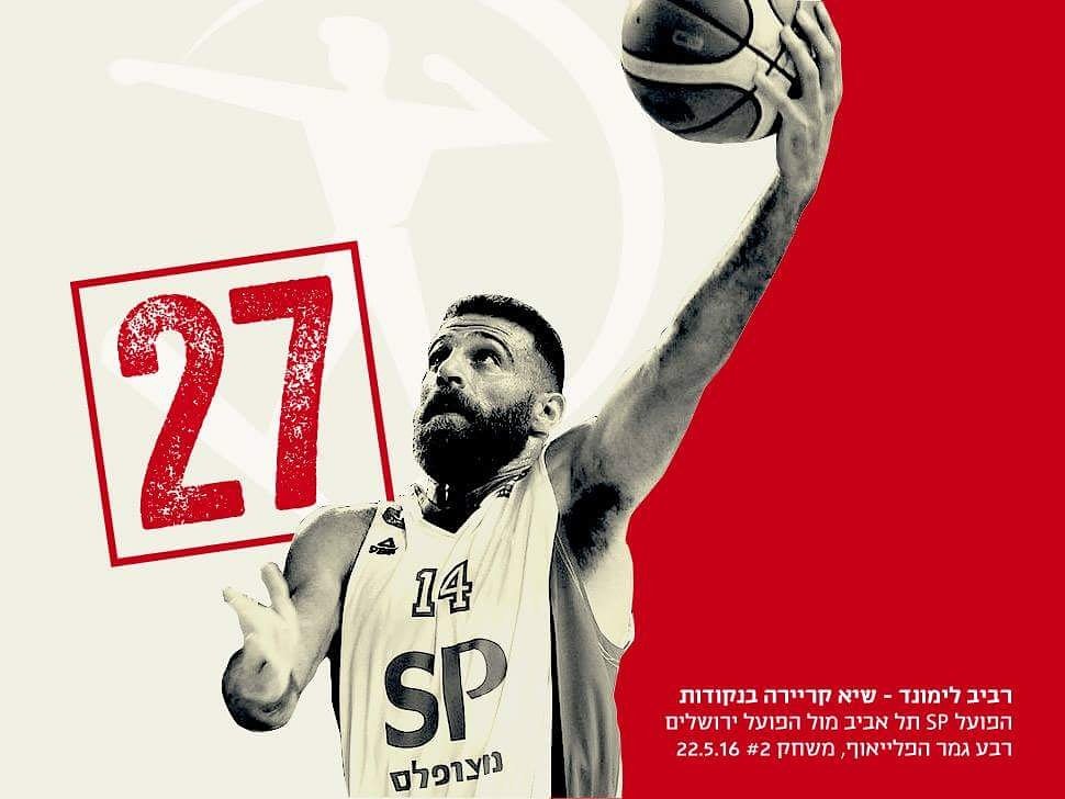 בסל הענק הזה של רביב לימונד, בגיל 31 ו-9 חודשים, הוא קובע שיא קריירה בכדורסל הישראלי עם 27 נקודות.