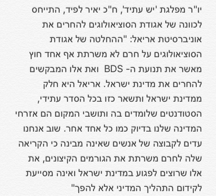 @naftalibennett תוקף את כוונת האגודה הסוציולוגית הישראלית להחרים את אונ' אריאל: "חרם הוא ההפך מחינוך, ויטופל בהתאם"2 ಮರುಟ್ವೀಟಿಸುವಿಕೆಗಳು 2ಇಷ್ಟಗಳು -