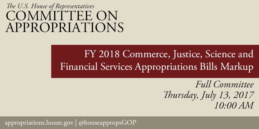 Today, the Committee will markup our FY18 Commerce, Justice, Science funding bill. Here's what you should know about the bill:pic.twitter.com/nFt6RlfpXX
