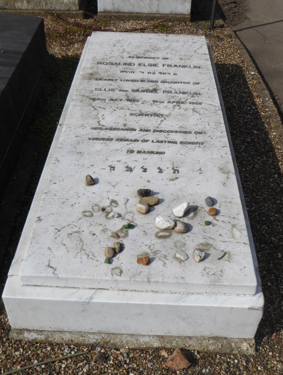 Rosalind Franklin’s X-ray observation of DNA contributed to the discovery of its helical structure by Crick and Watson in 1953 Her grave at is Grade II Listed