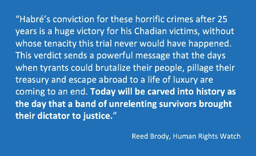 #HissèneHabré guilty of atrocities, jailed for life.@ReedBrody on the long road to justice http://bit.ly/1NYH7tO pic.twitter.com/MvGgafNkf5