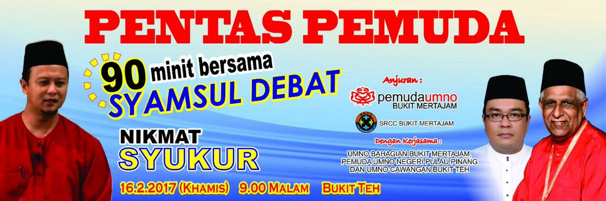 Marilah datang beramai2 ke 90 min bersama Syamsul Debat di Bukit Teh Khamis 16/2/2017 jam 9 mlm