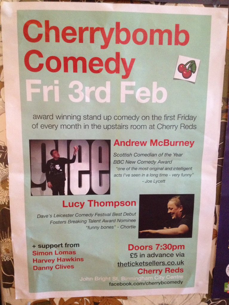 @ilovecherryreds this Friday. Grab em quick!#Birmingham https://www.theticketsellers.co.uk/tickets/cherry-reds-comedy-3rd-february-2017/10042831 … -