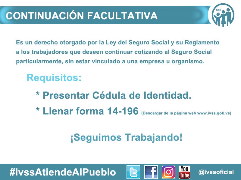 ¿Aún no estás cotizando ante el #IVSS ? Acércate a cualquier oficina administrativa del país y afíliate tú mismo.pic.twitter.com/gJE2LwjzKu