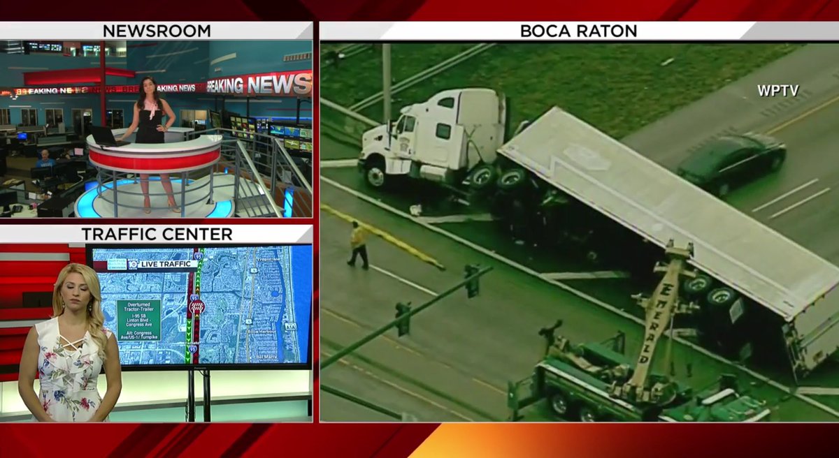 A man there to help clear accident dies after falling off overpass. Traffic still bad on 95/Congress Ave.