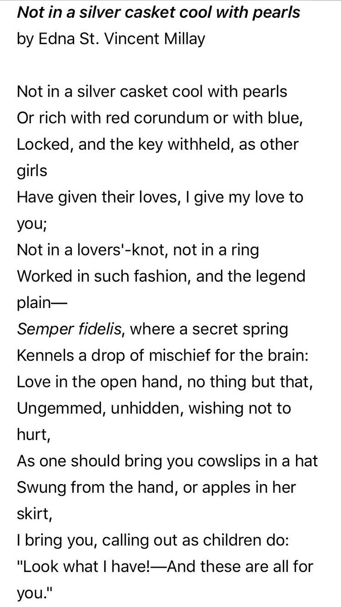 I went down a sonnet-reading wormhole this morning and Edna St. Vincent Millay KNOCKED ME OUT, as she so often does: