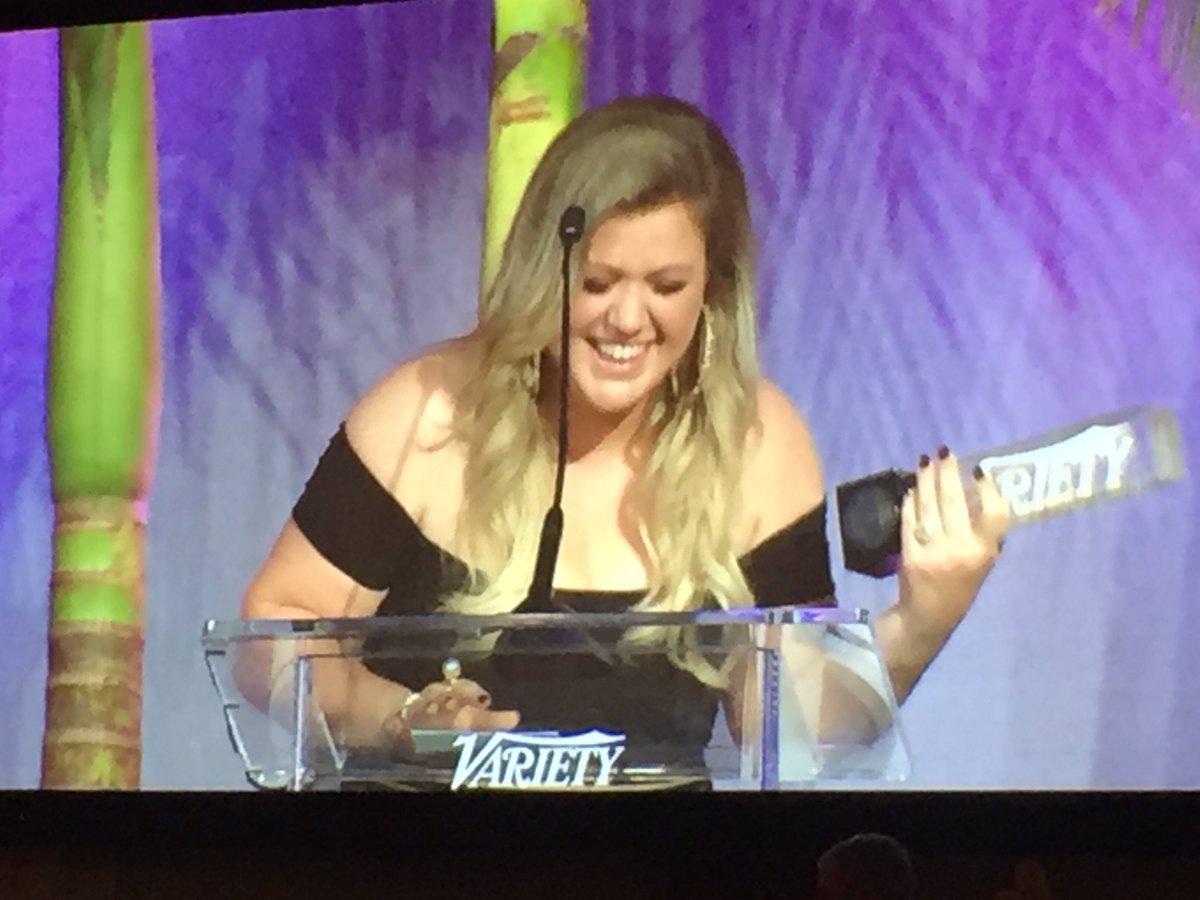 I wish you could all see this Kelly Clarkson speech. She's been vamping for 5 mins & hasn't gotten to her speech yet. The room is fully