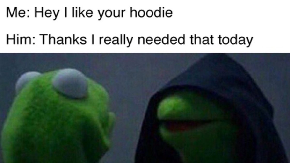 When you can feel that your friend is sad and you like the hoodie they’re wearing.