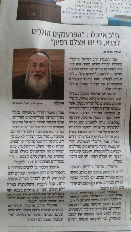 חבר הכנסת אייכלר ממשיך להתנשא על הספרדים. מצד אחד קורא להם פרענקים ומצד שני כותב טור ביומון אשכנזי על מרן הרב עובדיה זצל. זה פוליטקאי בגרוש.