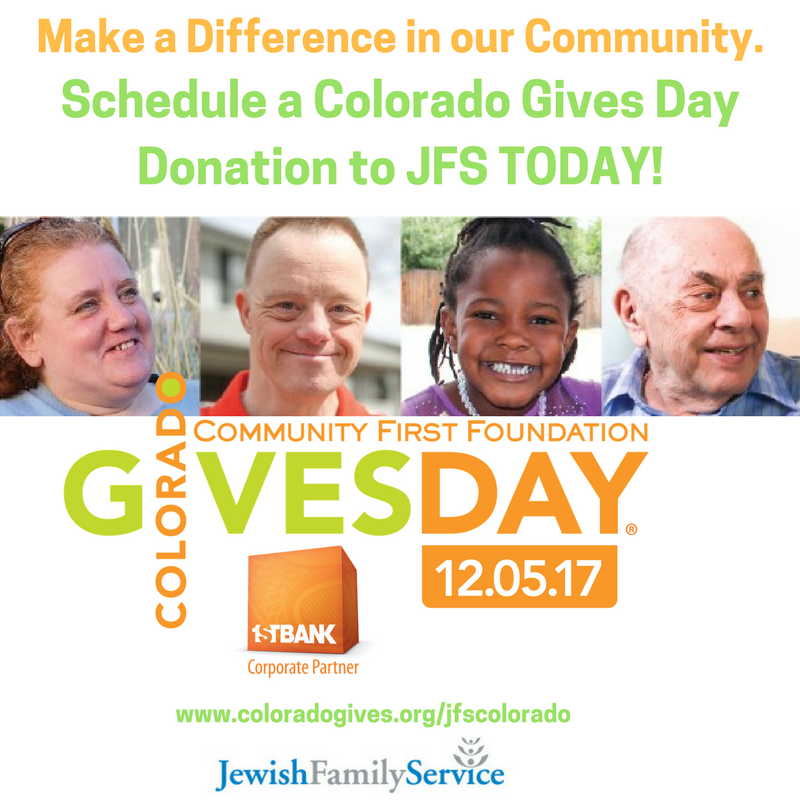 Please schedule a gift to Jewish Family Service on Colorado Gives Day at http://www.coloradogives.org/jfscolorado to help those in need in our community! All donations will be partially matched thanks to the $1 Million Incentive Fund from