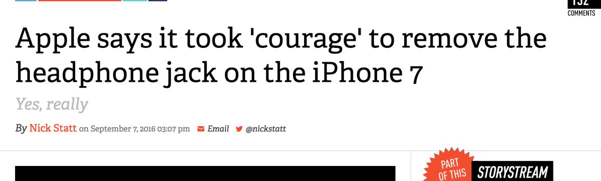 "Removing the headphone jack from the iPhone is not an act of courage, it’s an act of leverage."https://techcrunch.com/2016/09/07/courage/ …