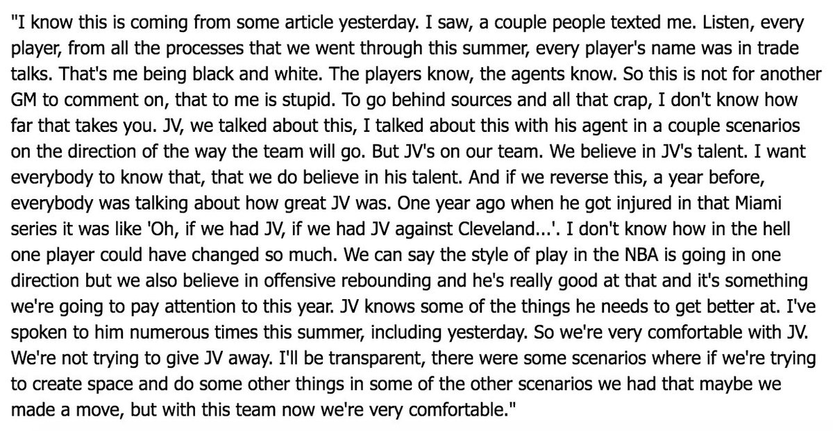 Full Ujiri quote on the Valanciunas trade rumours, an anonymous GM quote he's not thrilled about and JV's fit on the Raps going forward:pic.twitter.com/tE9kXIeYDU