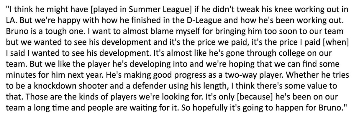 Masai says he'd like to see Bruno get some minutes this year, sees him growing as 2-way player. "Hopefully it's going to happen for Bruno"