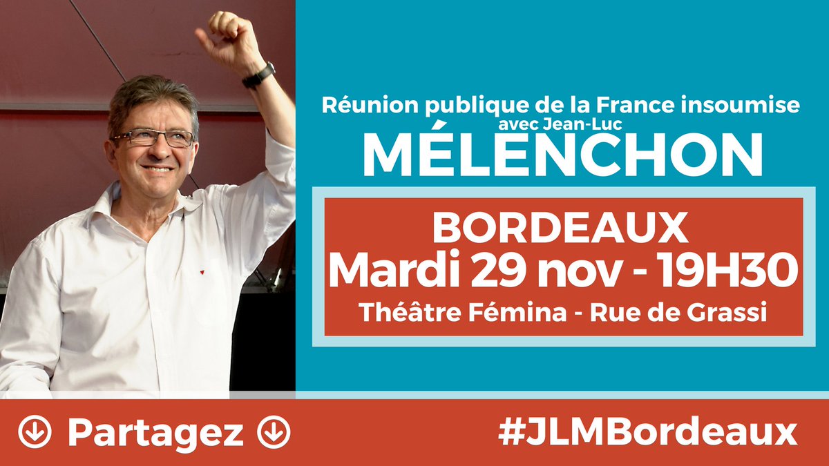 #Bordeaux et ses environs, RDV ce soir à 19h30 au théâtre Fémina ! Faites passer !#JLMBordeauxpic.twitter.com/p6B0WY2KF1