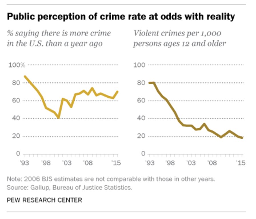 Americans regularly say crime is up, even when the statistics say it is down http://pewrsr.ch/2kHl5lY pic.twitter.com/vVoNuTg1Lp