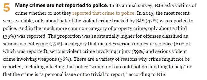 Only 47% of violent crime & 35% of property crime in US was reported to police in 2015, per