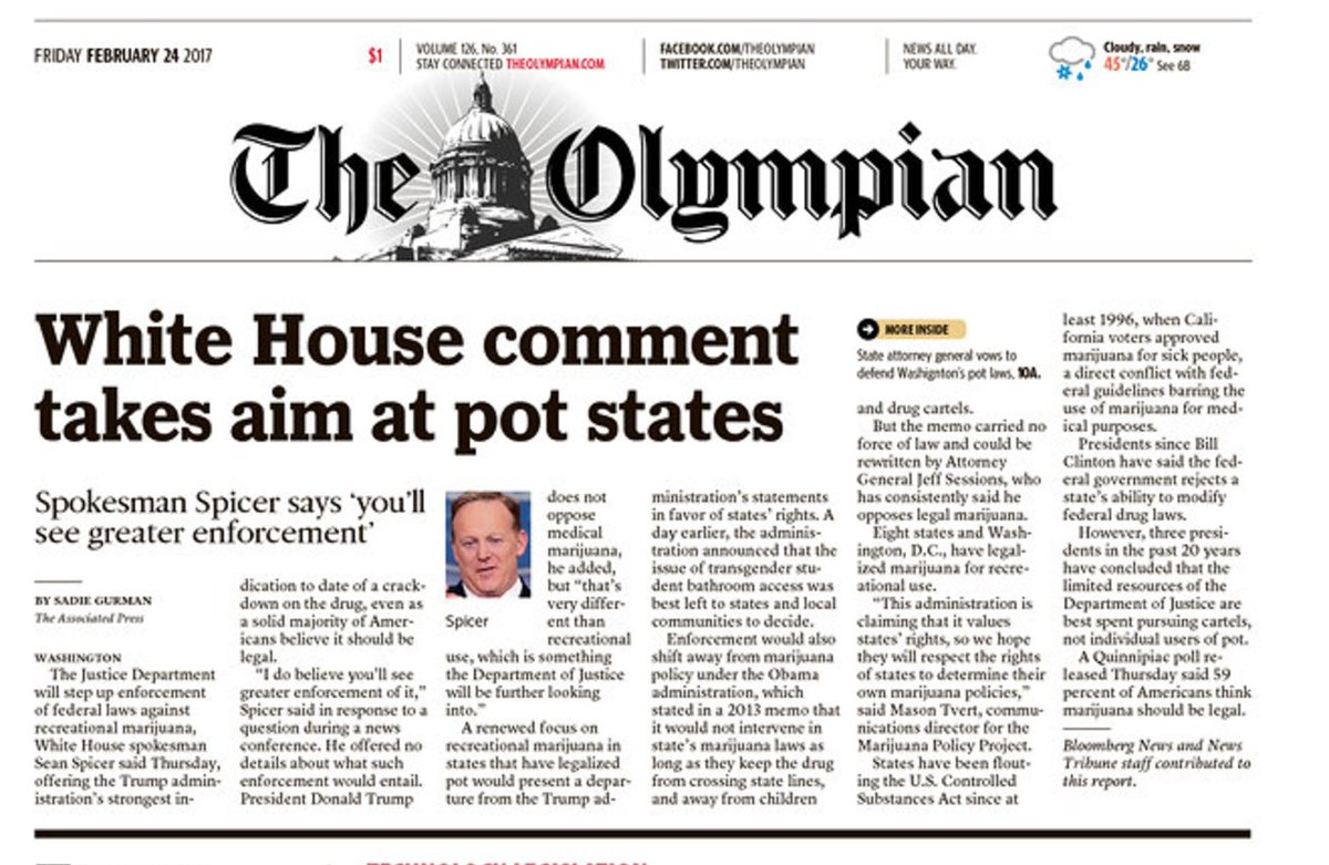 White House comment is front-page news in recreational marijuana statespic.twitter.com/Bu7suHBqRa