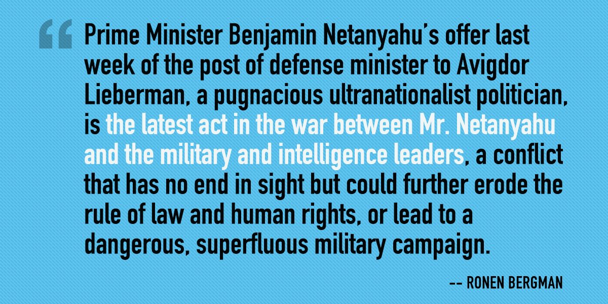 14. The latest coalition shakeup is part of the Israeli defense establishment's ongoing clash with Netanyahu.