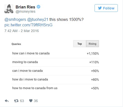 7. מספר החיפושים אחרי השאלה "?how can I move to canada" זינק בארה"ב ב-1500% אחרי ההצלחה של טראמפ אתמול
