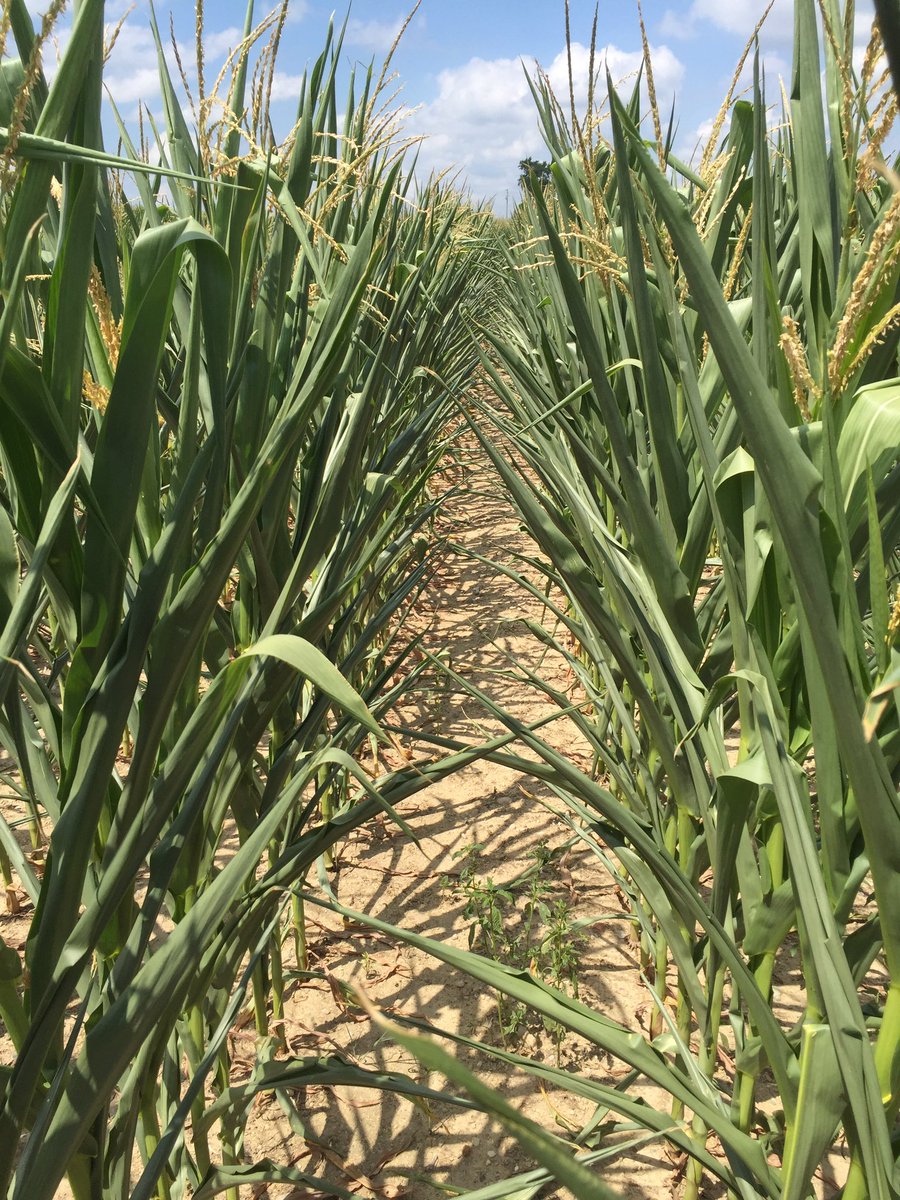 Clark Co IL on good ground that's been missing rain. Farmer C says most fields there show stress but this is near worst.