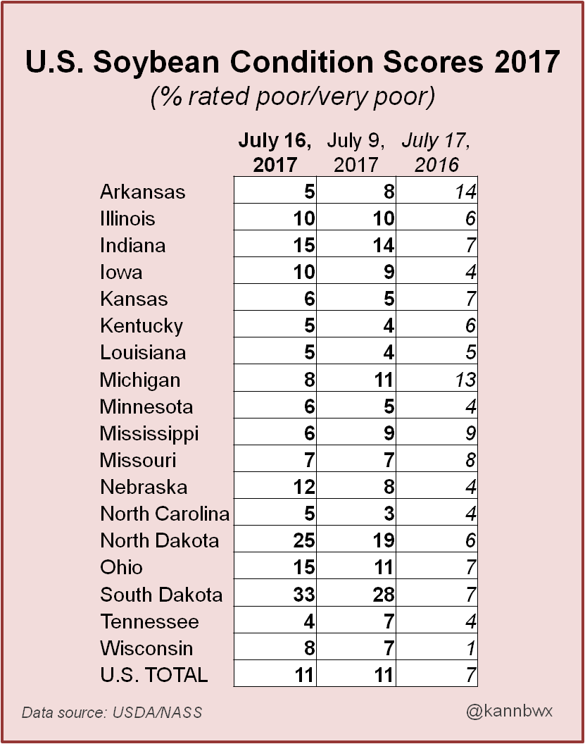 poor/very poor held at 11% this wk. Only improvements were AR/MI/TN/MS. Not too sure how that leads to unchanged on the week...
