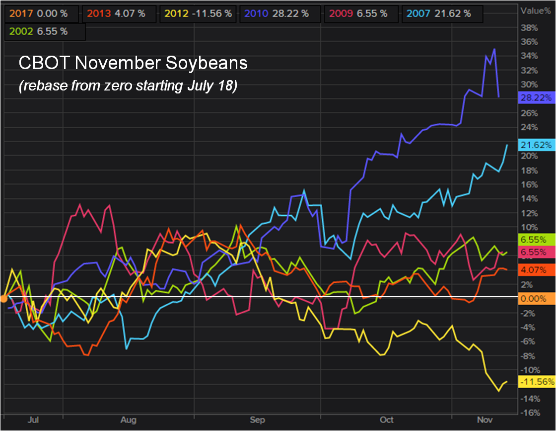 Here are the years w/ notable price upside after July 18. White line is the 0% mark, Nov charted. Apols for chaotic graph!