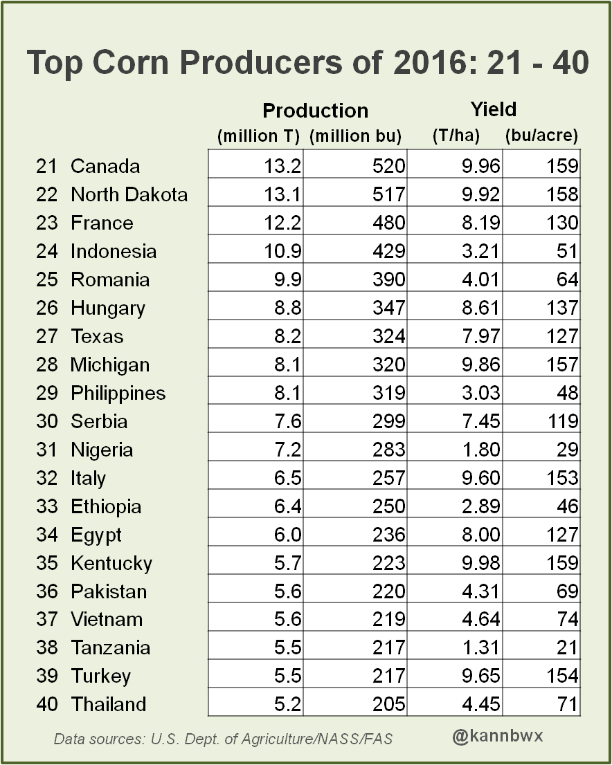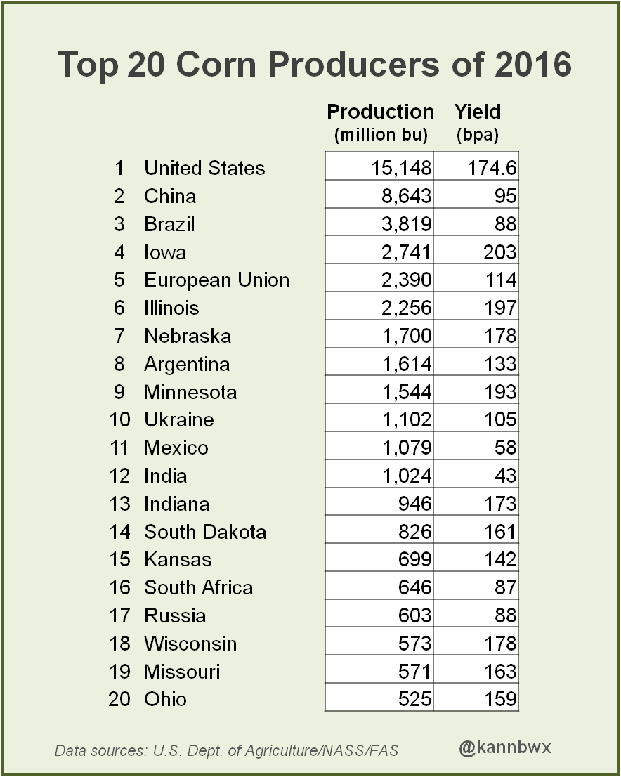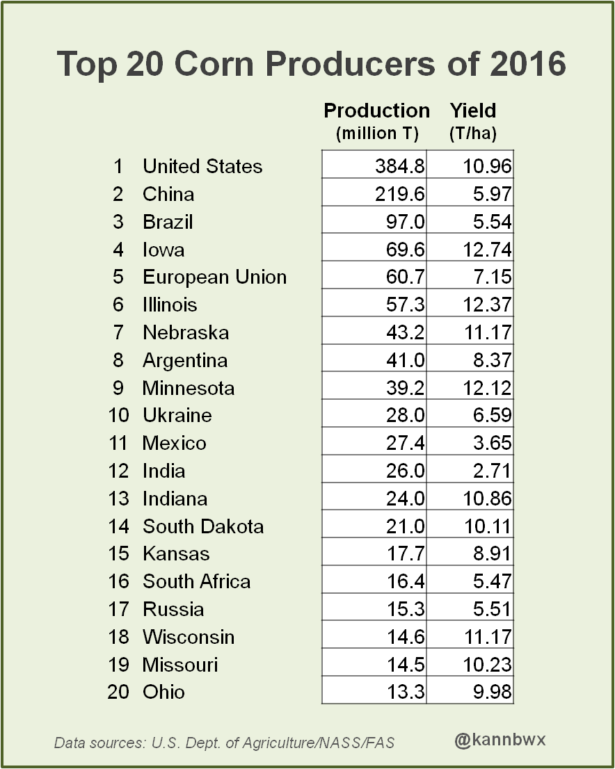 Here's the top 20 producers for the metric folks. & are still pending, EU's harvest was very average, Iowa record.