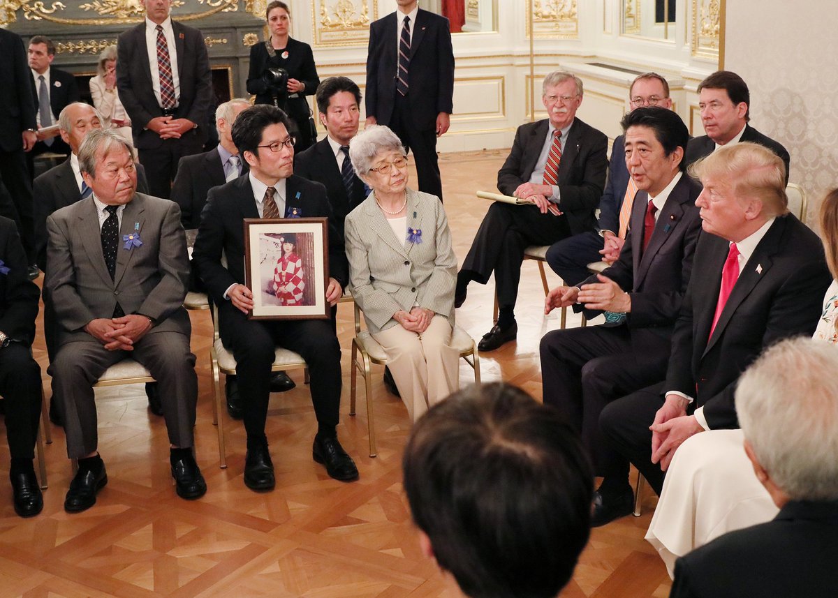 《総理の動き》本日(5月27日)安倍総理は迎賓館赤坂離宮でアメリカ合衆国のドナルド・ジョン・トランプ大統領と共に、拉致被害者御家族と面会しました。https://www.kantei.go.jp/jp/98_abe/actions/201905/27rachi.html …pic.twitter.com/hgf0PeeuAe
