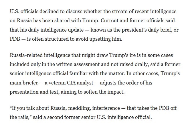 If the president is refusing to hear—or in any other way making impossible—the intelligence community's attempts to brief him on daily threats against America, he's in violation of his Oath of Office and must be removed from the White House immediately. Please share if you agree.