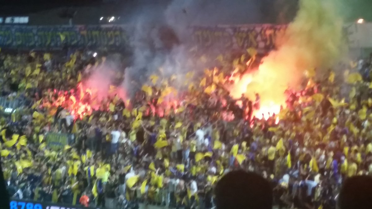 אבוקות ביציע מכבי רגע לפני שריקת הפתיחה