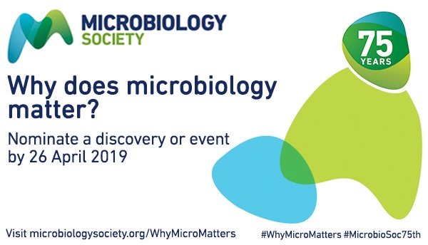 #WhyMicroMatters will be promoted during our anniversary year in 2020. If you are a member and have an idea, discovery or event that demonstrates the importance of microbiology, be sure to cast your nomination here: http:/microb.io/2QvXdRD#MicrobioSoc75thpic.twitter.com/zmfvDI7yvA
